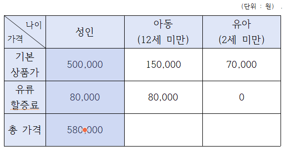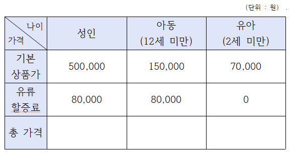 위의 표에서도 마지막 행에 합계가 들어가있죠?